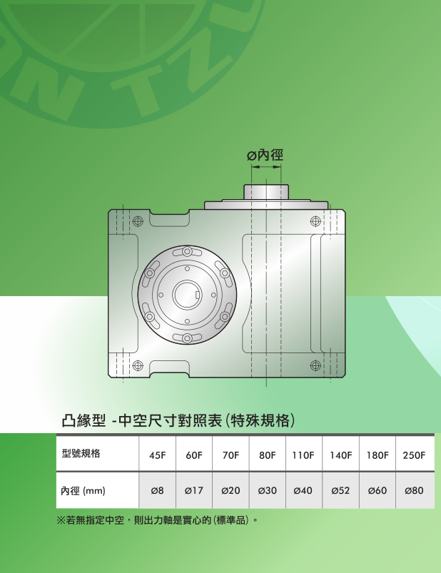 凸輪朋分器DF凸緣法蘭型具備 重負荷特征,可蒙受較大的垂直徑向或軸向壓力,其輸入軸為法蘭盤式設想,有凸緣中間,盤面螺孔,定位,銷孔,牢固面廣大,可以使鏈接件更具堅固安穩。合用于較大負荷的反轉展轉式圓盤驅動場所,DF凸輪朋分器普遍利用在各種盤式加工機器及近似機構的財產機器,主動化間歇驅動部,驅動圓盤。